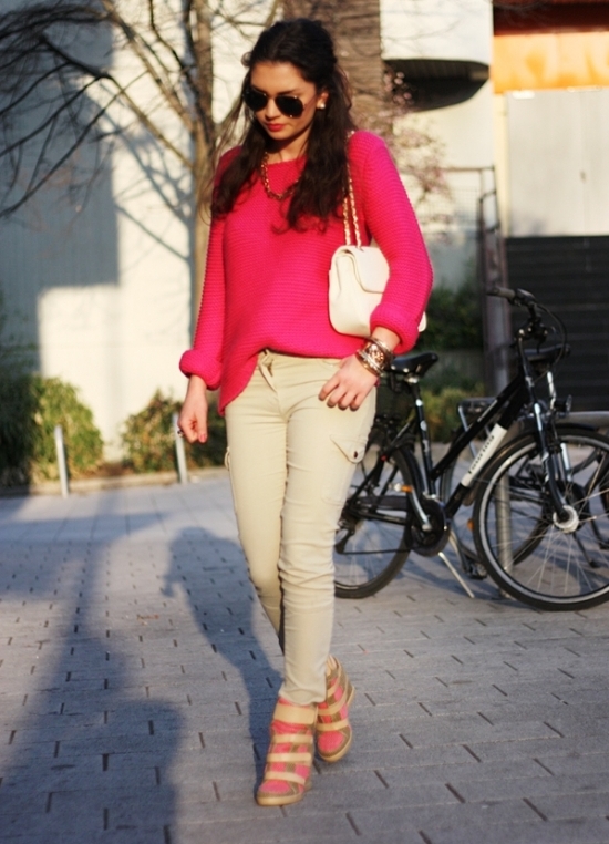 Ināʻoi aku ka maʻa mau o ka lole, a laila hiki iāʻoe ke hoʻohui i nā sneakers me nā paila liʻiliʻi a iʻole ke kapa wili. ʻAe houʻia kaʻaʻahu a me ka'aʻawe ke okiʻia. Hōʻikeʻia kēiaʻano hiʻohiʻonaʻole, akā ma ka manawa hoʻokahi e hana i kahi kiʻi alanuiʻano maʻalahi.